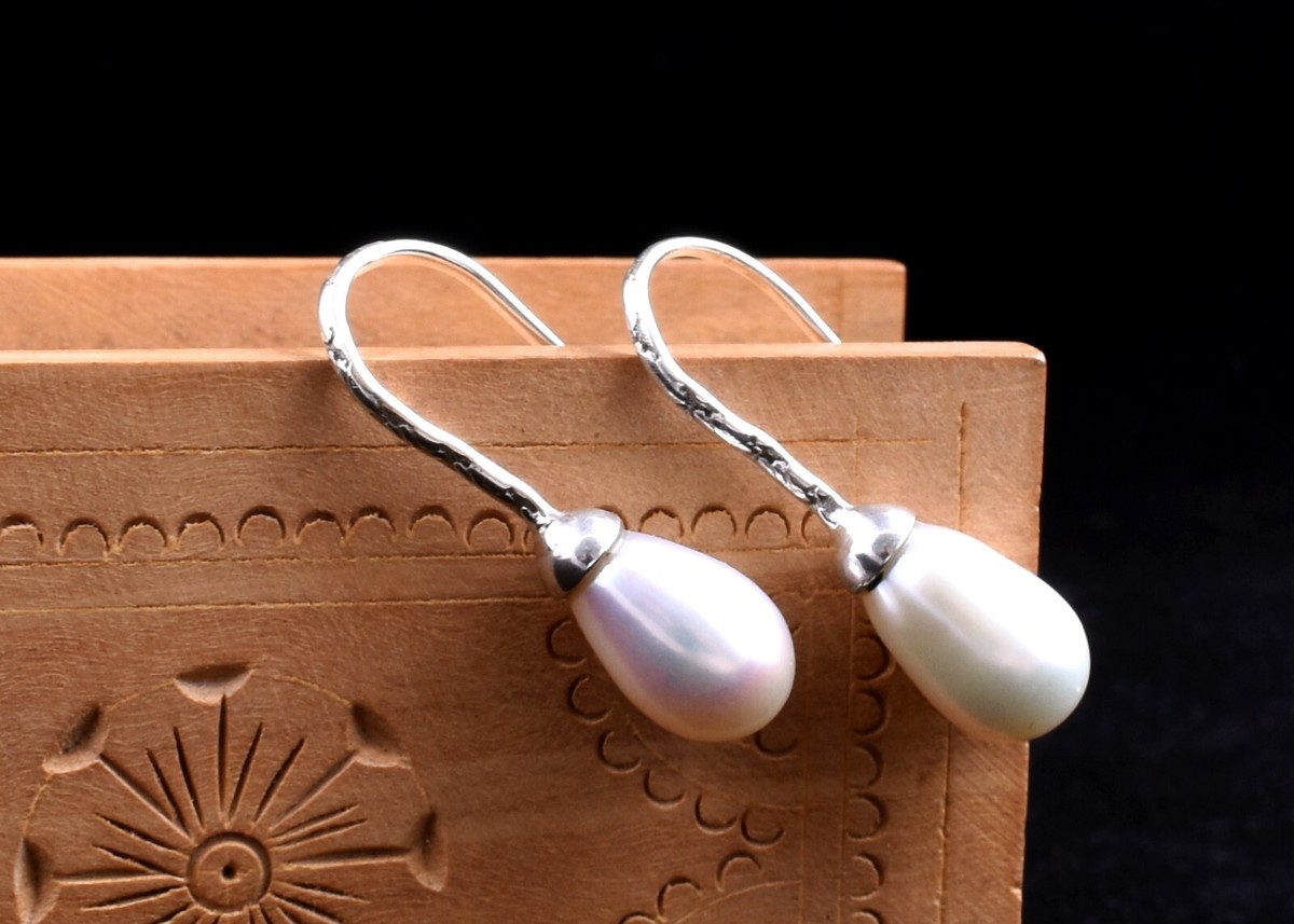 Orecchini pendenti in argento sterling 925 fatti a mano con perle bianche...