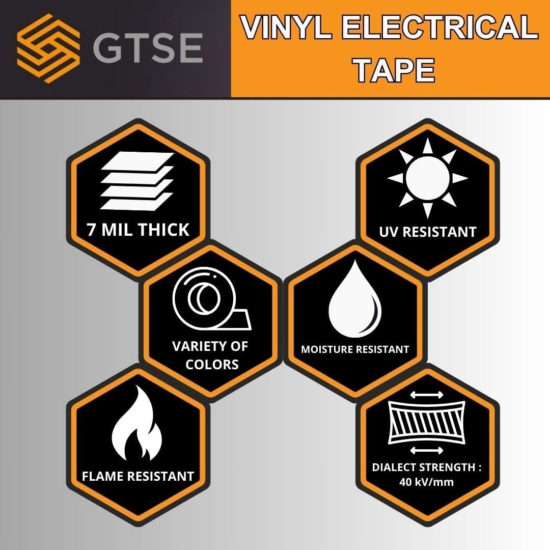 Exceptionally Durable: Made from premium PVC, our tape offers excellent thermal resistance and abrasion protection. It's moisture-resistant, UV resistant, flame retardant, and suitable for use up to 600V and 176F.