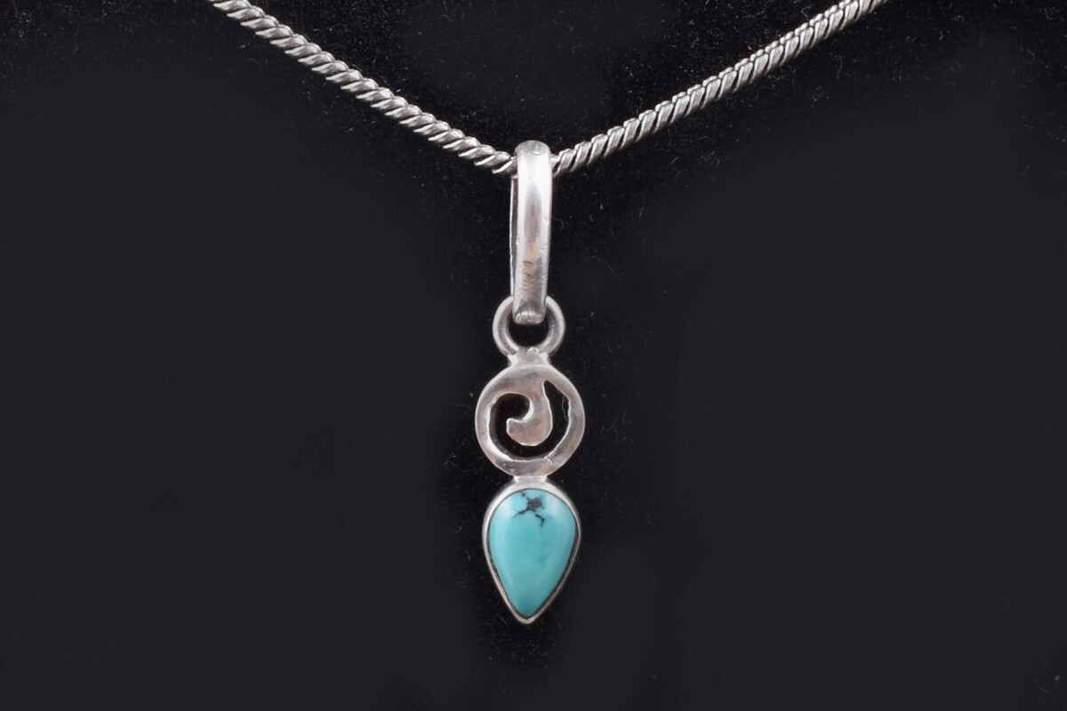 Ciondolo design pietra turchese argento sterling meravigliosa bella collana d...
