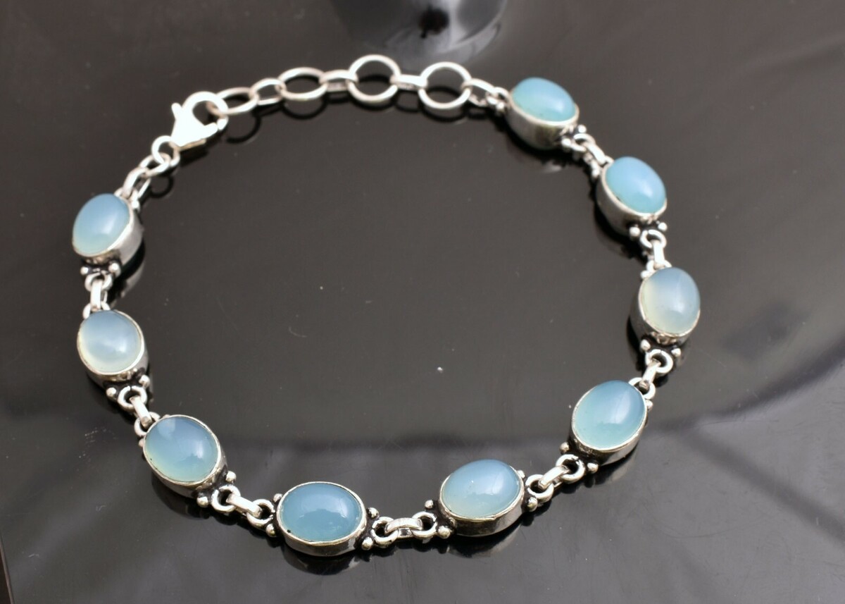 Bracciale da donna in argento sterling con pietre preziose di calcedonio...