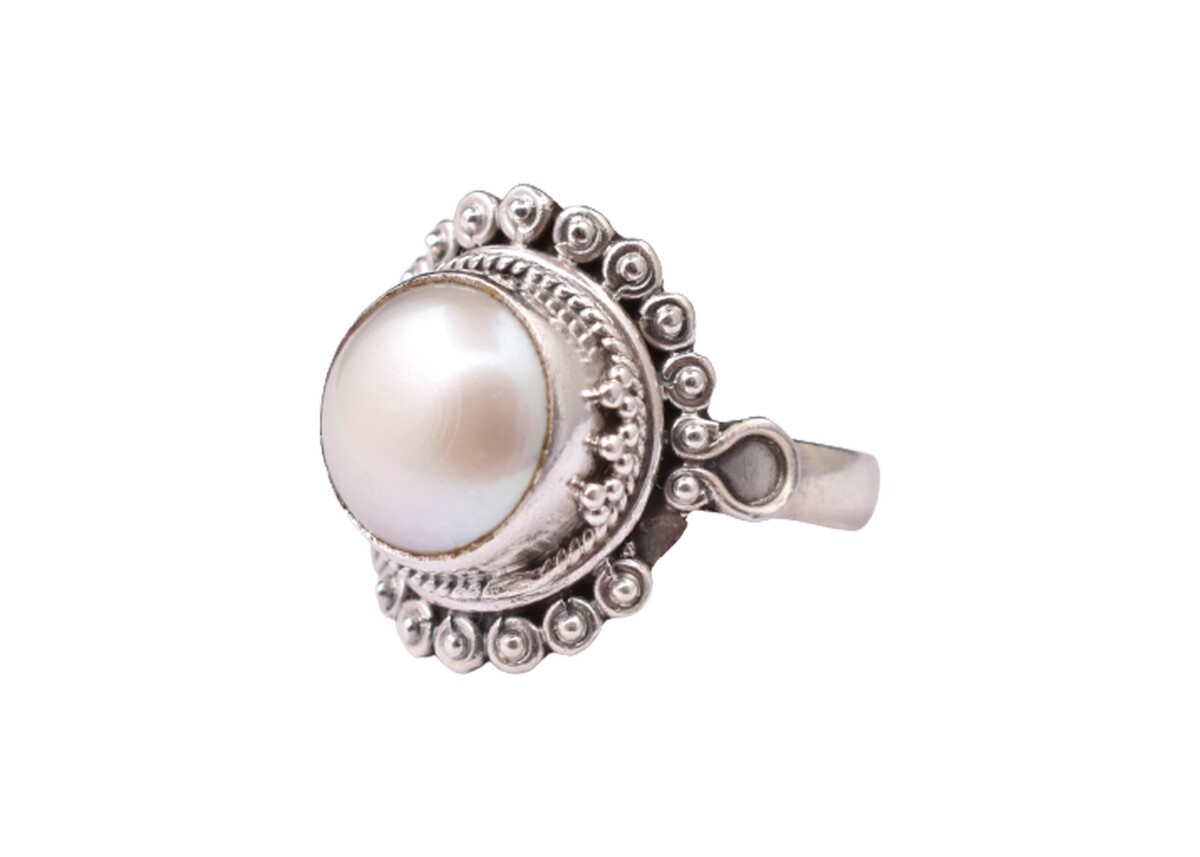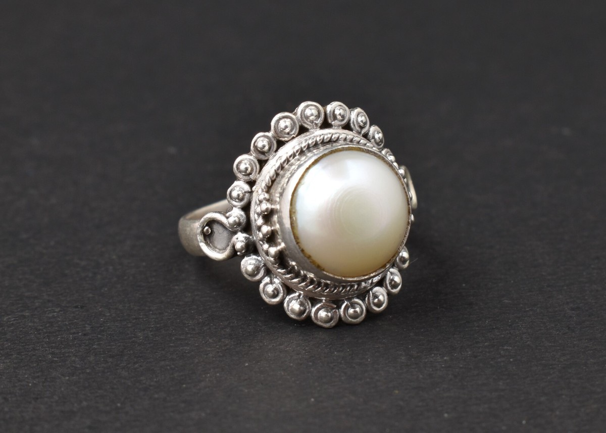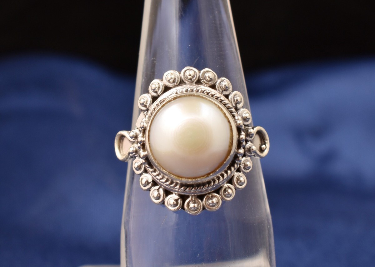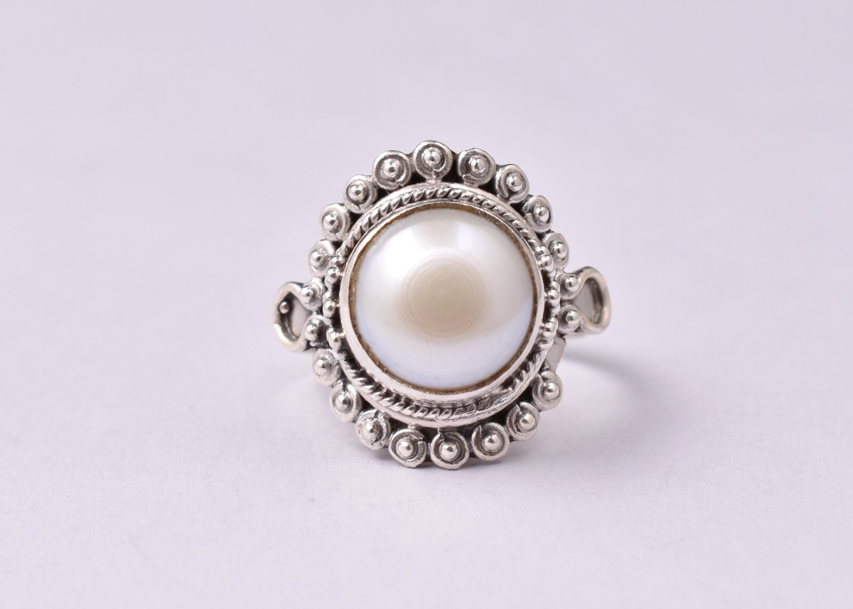 Anello da donna in argento sterling 925 forma rotonda con perle d'acqua...