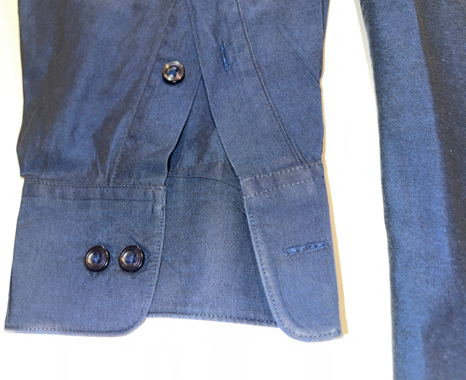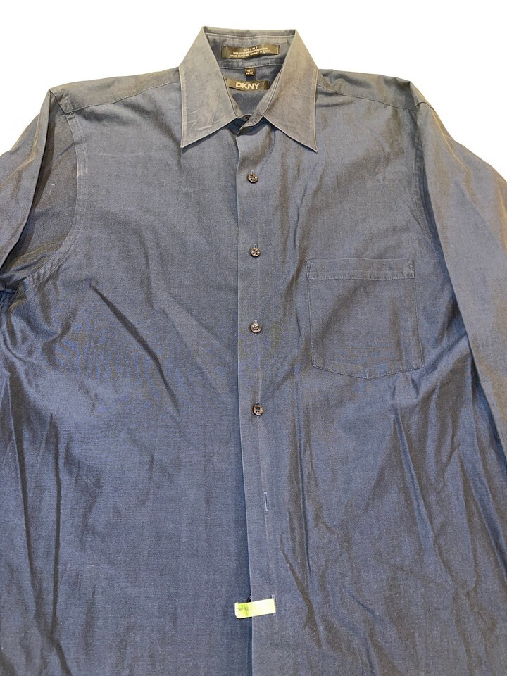DESIGNER DKNY 80'S 2 PLY 100% COTTON BUTTON CASUAL DRESS BLUE SHIRT 15 1/2 32/33