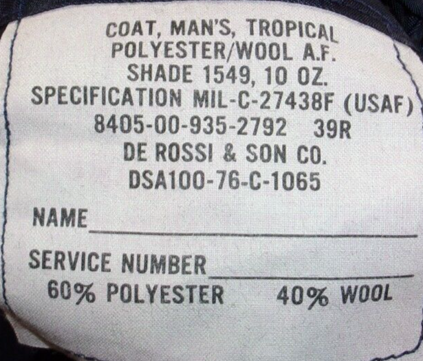 1976 USAF AIR FORCE DRESS BLUE UNIFORM JACKET COAT TROPICAL SHADE 1549 39R