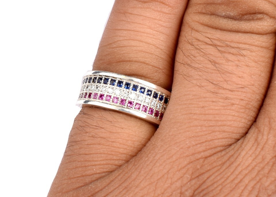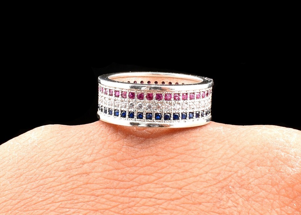 925 Sterling Silver Patriotic American Flag Unisex Handmade Band Ring ideal Gift