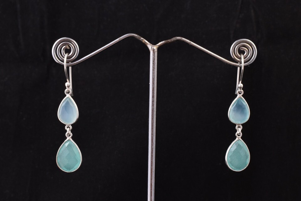 925 Sterling Silver Chalcedony Gemstone Handmade Dangle Earrings HerGift ES-1233
