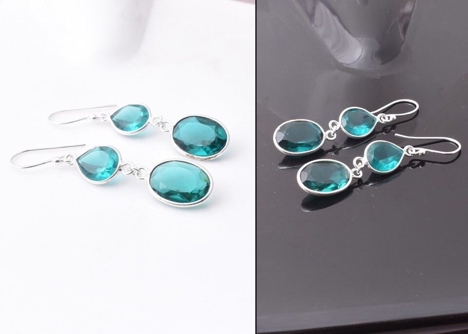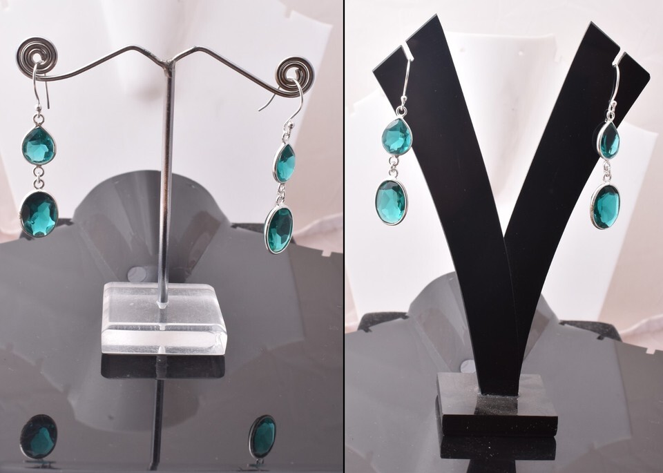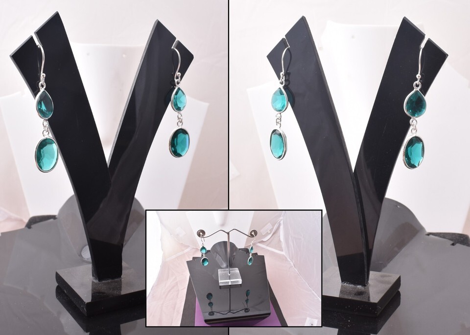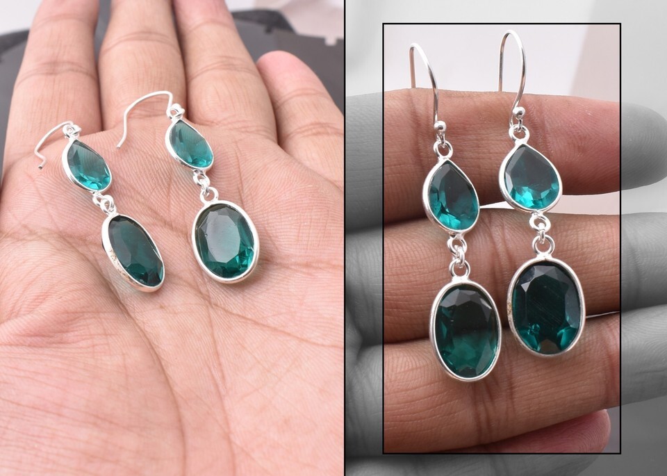 925 Sterling Silver Teal Sapphire Gemstone Handmade Earrings Valentine's Day ES