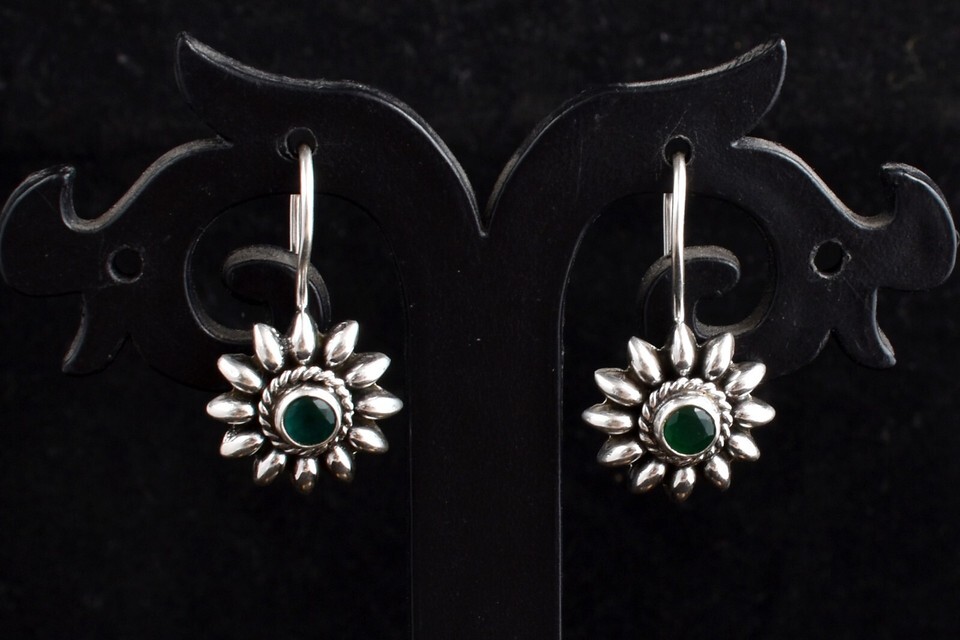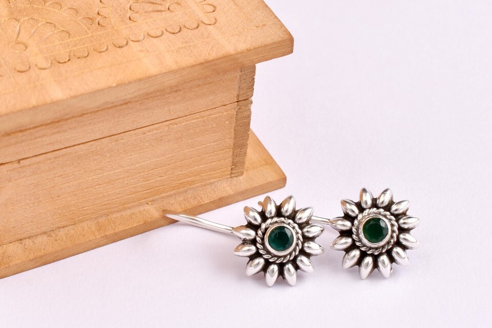925 Sterling Silver Natural Emerald, Ruby ,Topaz Handmade Gemstone Stud Earrings