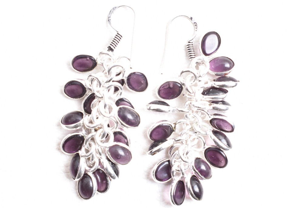Handcrafted Silver Plated Amethyst Grape Bunch Bewitching Earrings Women Gift