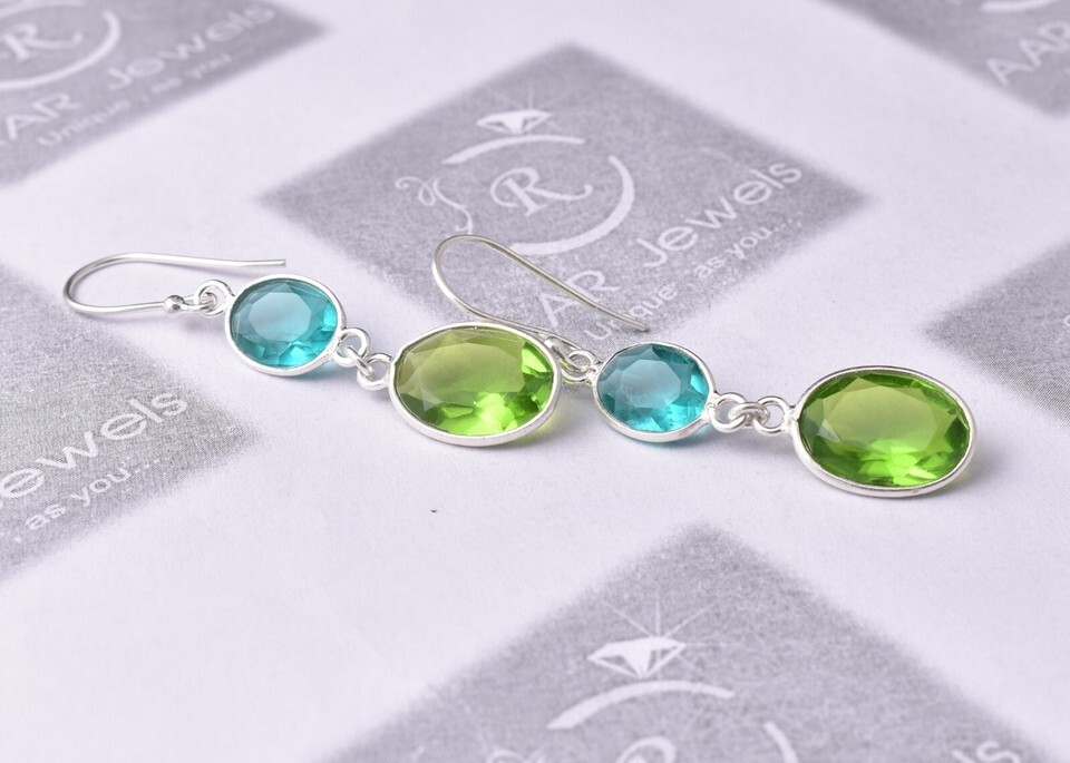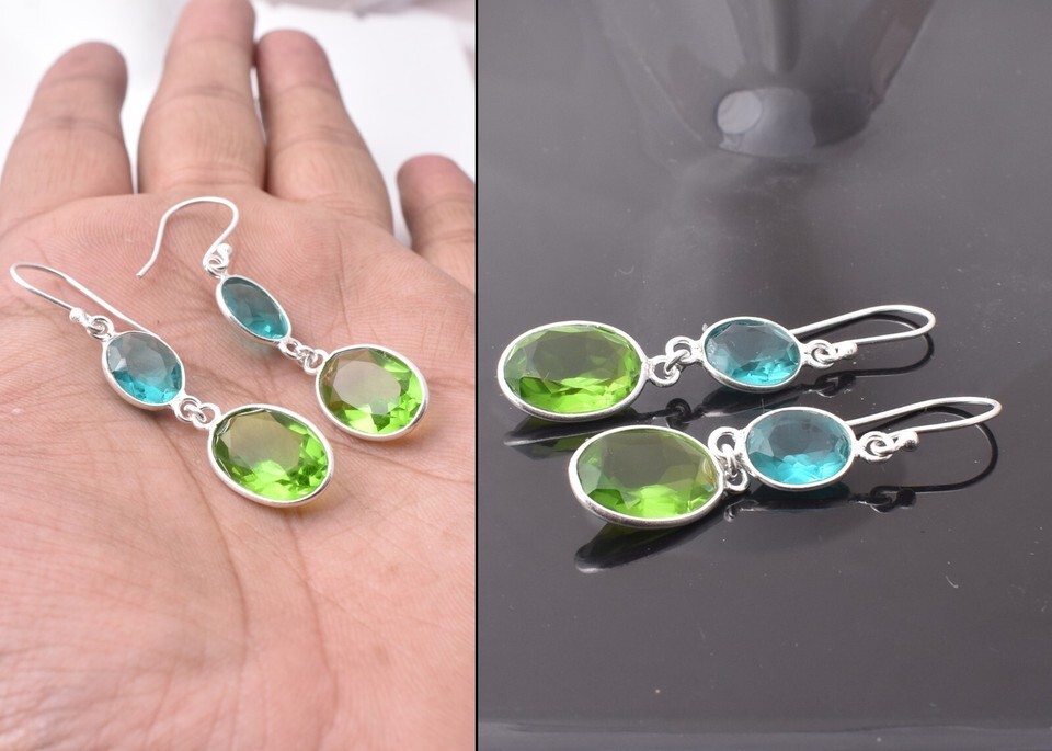 925 Sterling Silver Peridot Gemstone Handmade Earrings Valentine's Day Gift ES