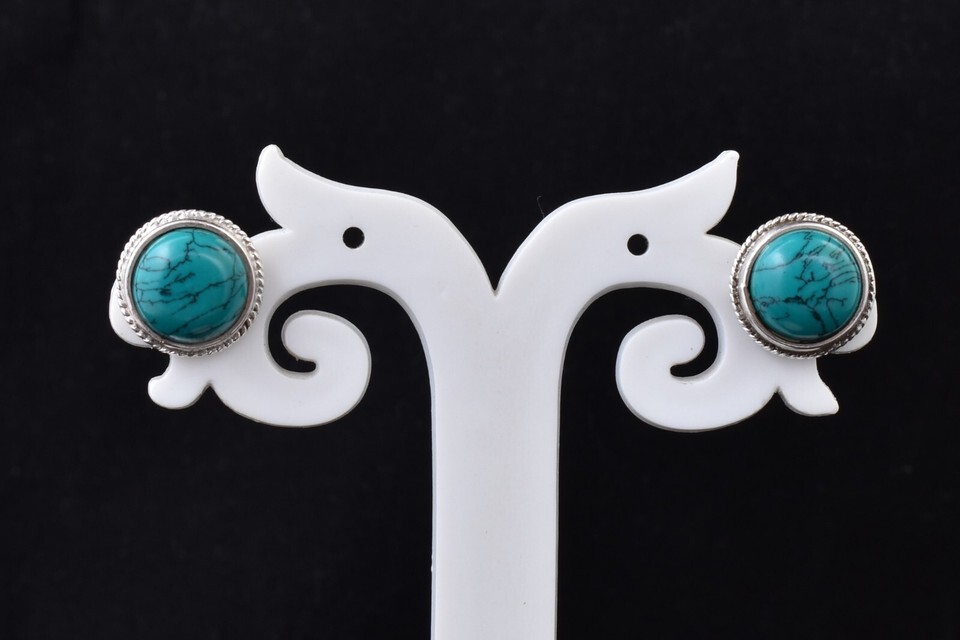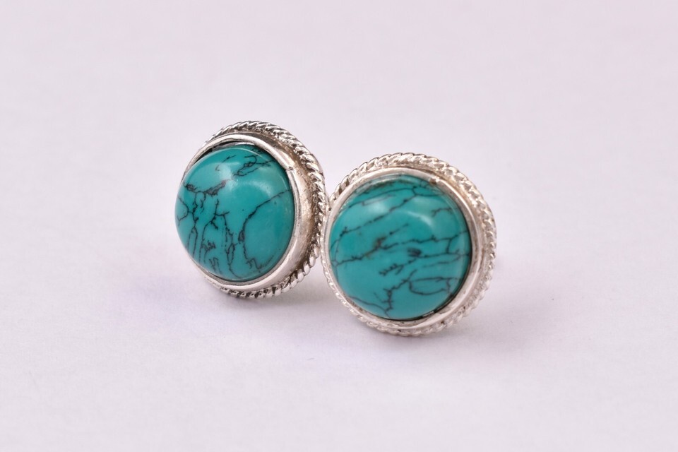 925 Sterling Silver Turquoise Stone Handmade Fantastic Dangle Nice Earrings ES