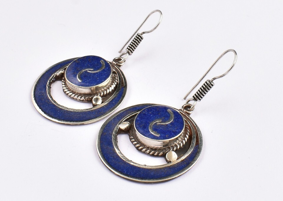 Casual Wear Blue Nepali Jewelry Handmade Dangle Drop Earrings For Women