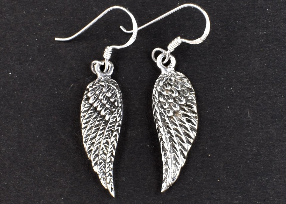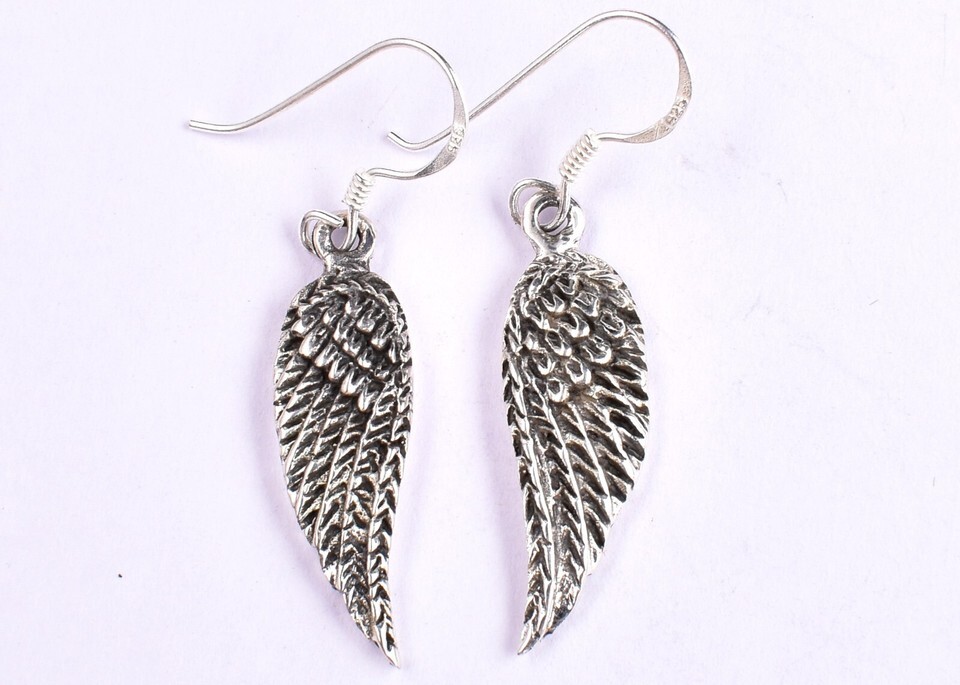 Handmade 925 Sterling Solid Silver Wings Shape Women Wear Drop Dangle Earrings