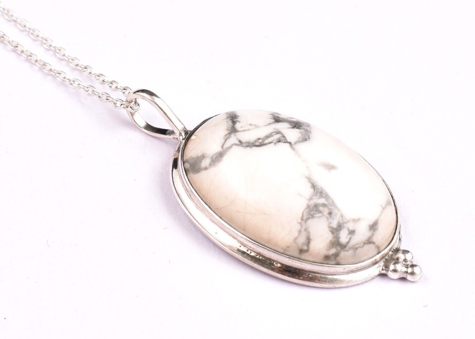 Handmade 925 Silver Rose Quartz, Howlite Gems. Unisex Wear Pendent Necklace