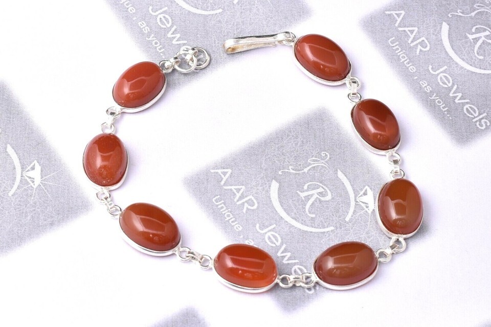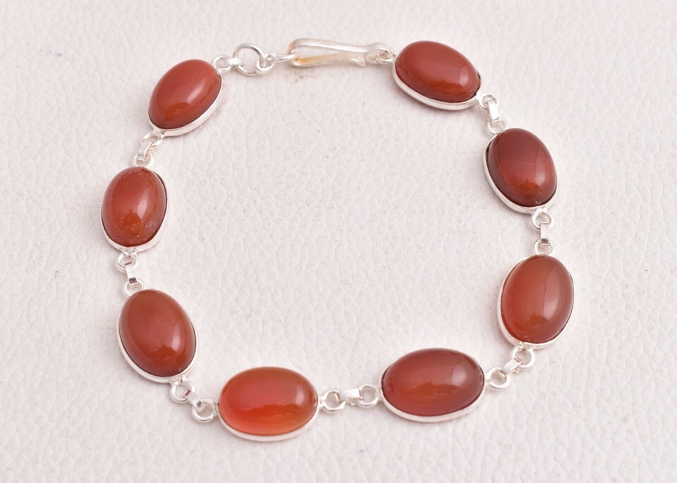 925 Sterling Silver Carnelian Gemstone Handmade Bracelet Women's Party Wear BS