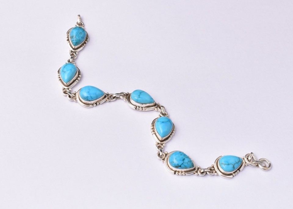 925 Sterling Silver Turquoise Gemstone Handmade Women's Bracelet Casual Wear BS