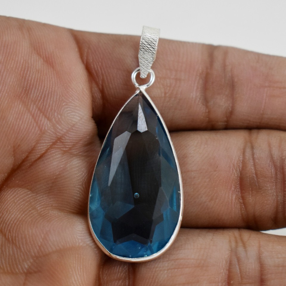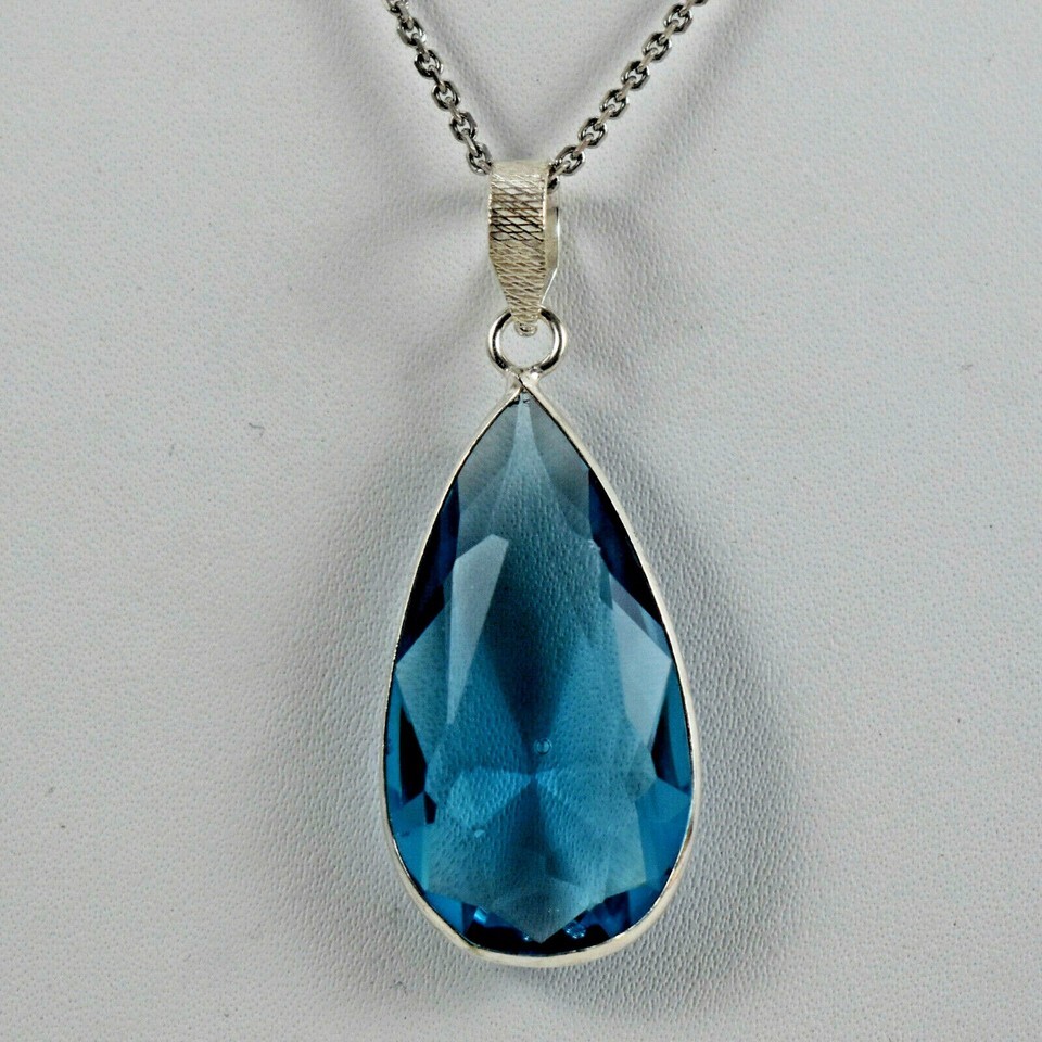 925 Sterling Silver Topaz Gemstone Handmade Pendant Women Fest Gift PS-2346