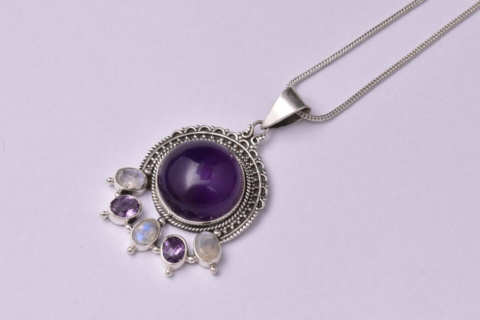 Sterling Silver Pendant Necklace Natural Amethyst Jewelry PS-1003