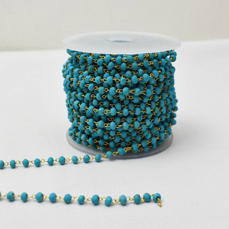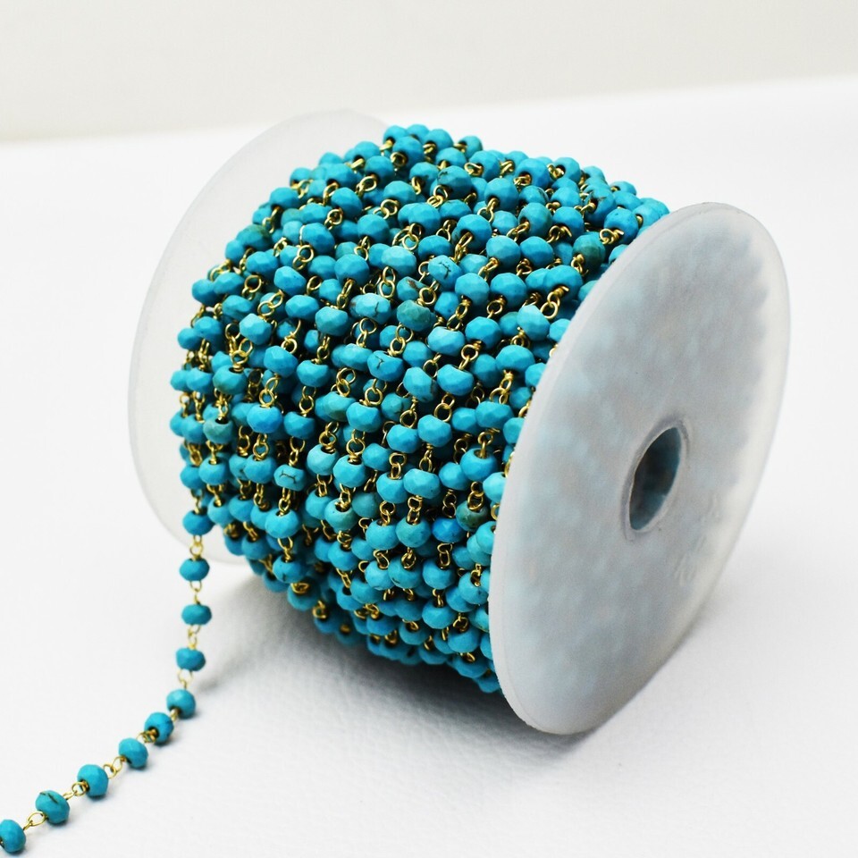 Natural Turquoise 925 Sterling Silver Wire Wrapped Rosary Beaded Chain SRC-1005