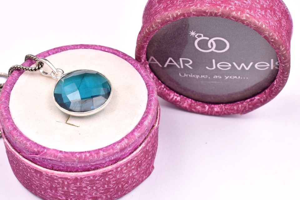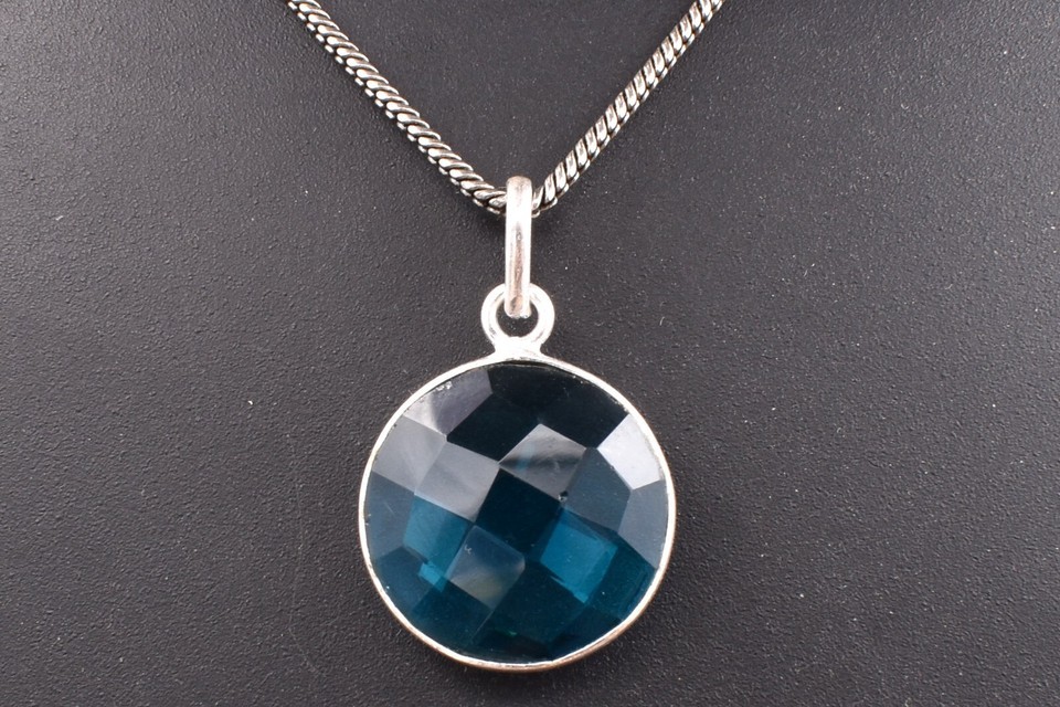 London Blue Topaz Gems 925 Sterling Silver Handmade Women Beautiful Pendant-2628