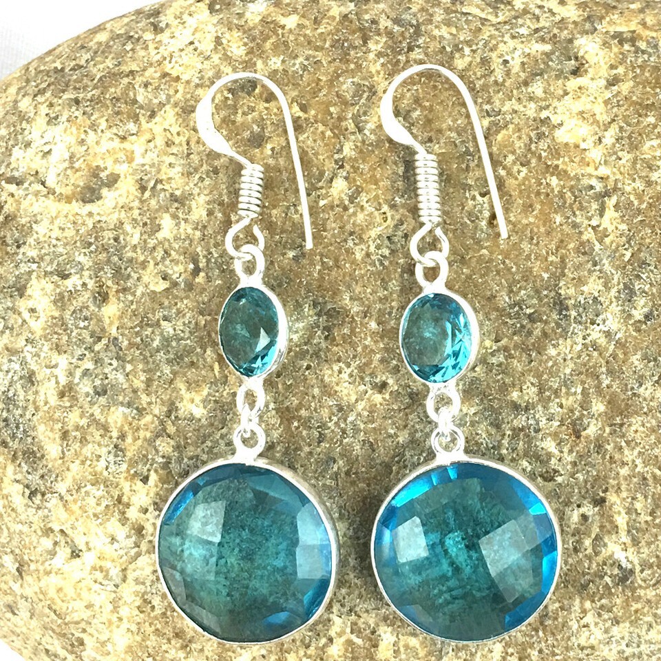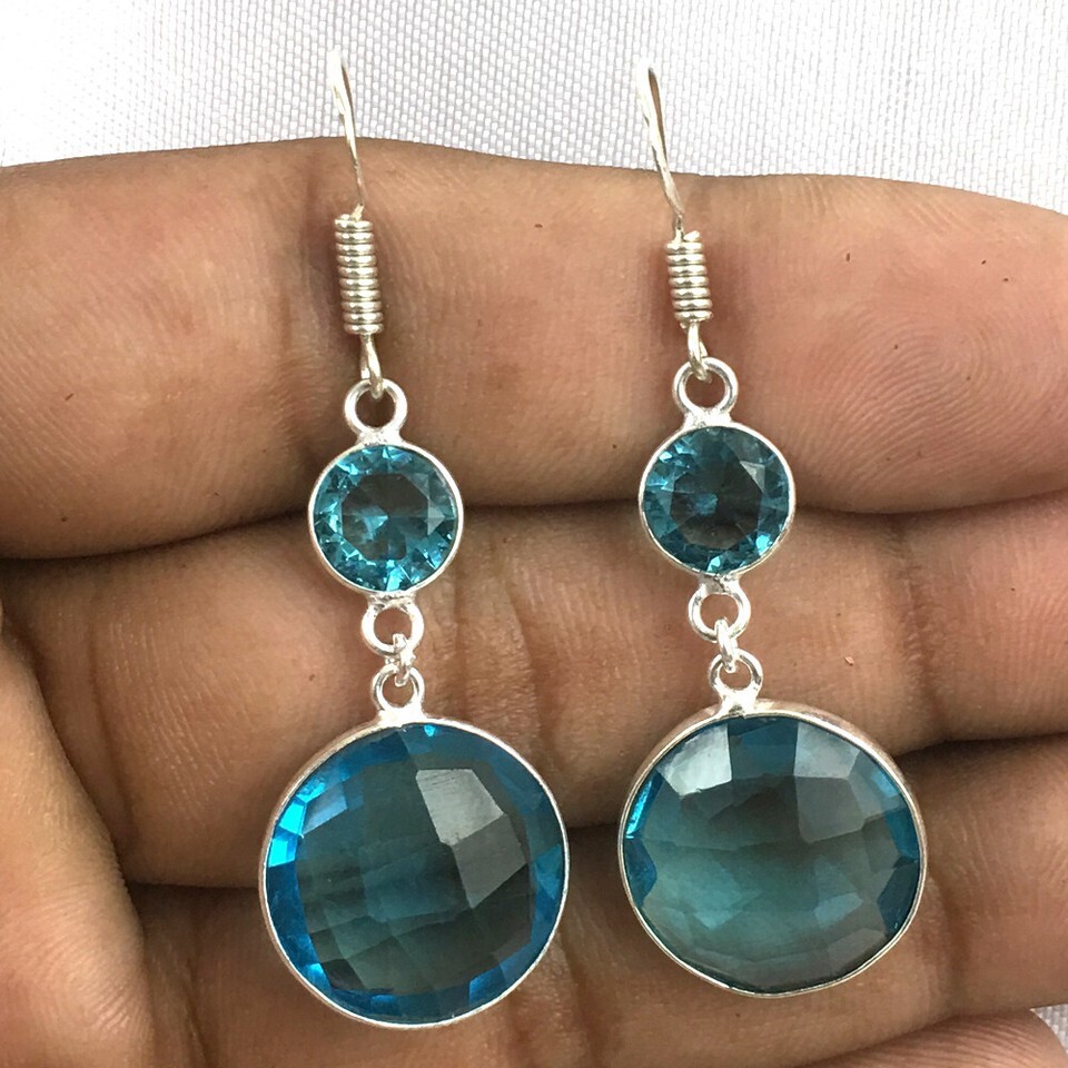 Handmade 925 Sterling Silver/Gold/Rose Gold Plated Blue Topaz Oval Shape Earring