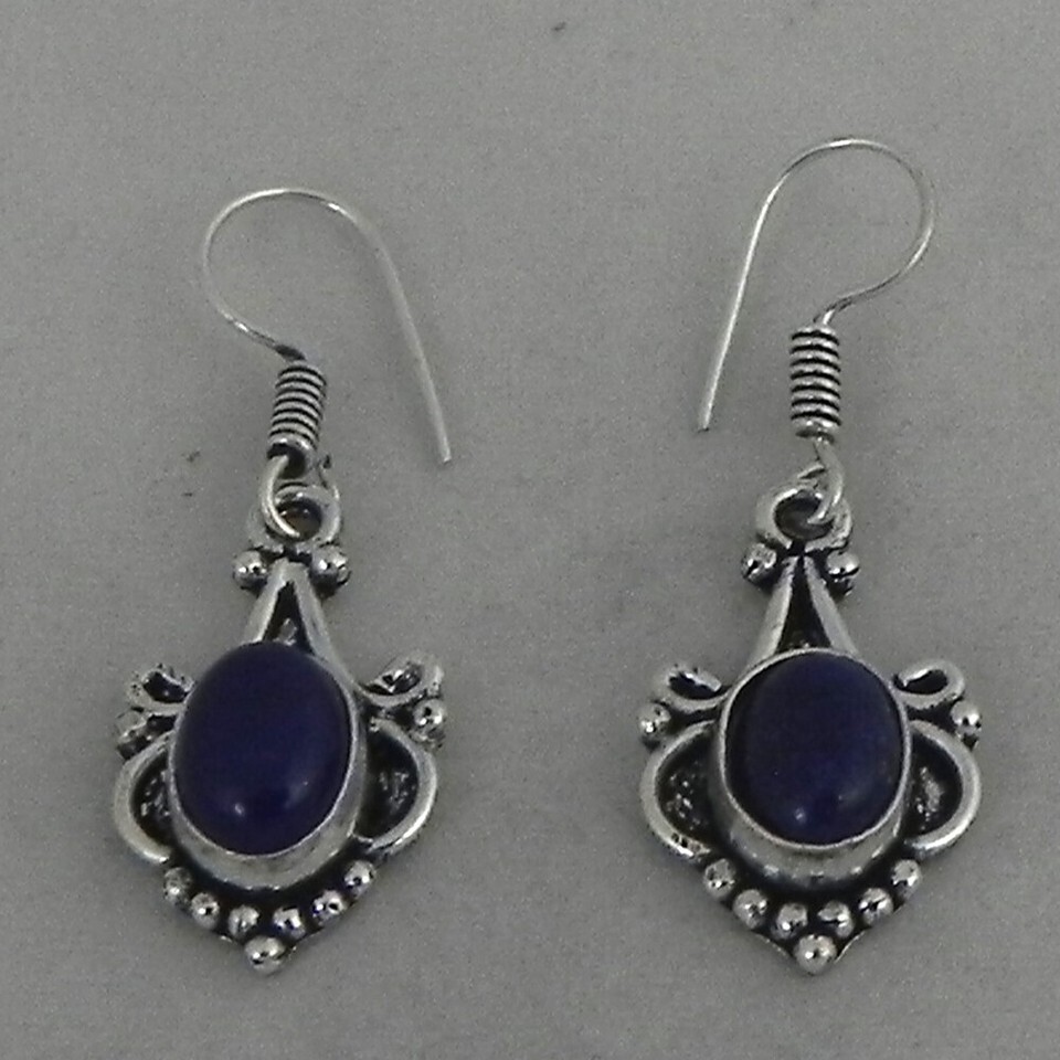 Sterling Silver Lapis Lazuli Rose / Gold Plated Dangle Beautiful Women Earrings