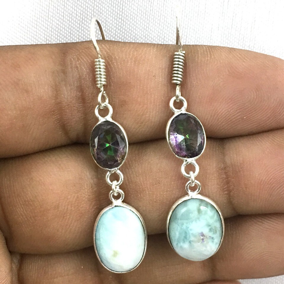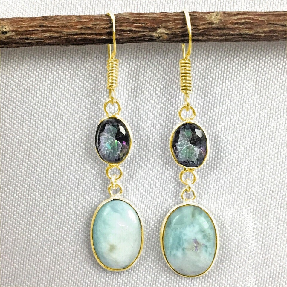 925 Silver Larimar Mystic Quartz silver / Gold /Rose Plated Lovely Girl Earrings