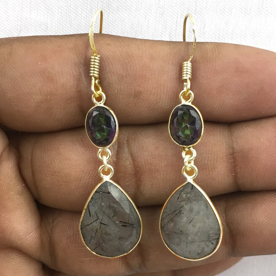 925 Sterling Silver Rutile & Mystic Quartz Gold / Rose Gold Plated Earrings
