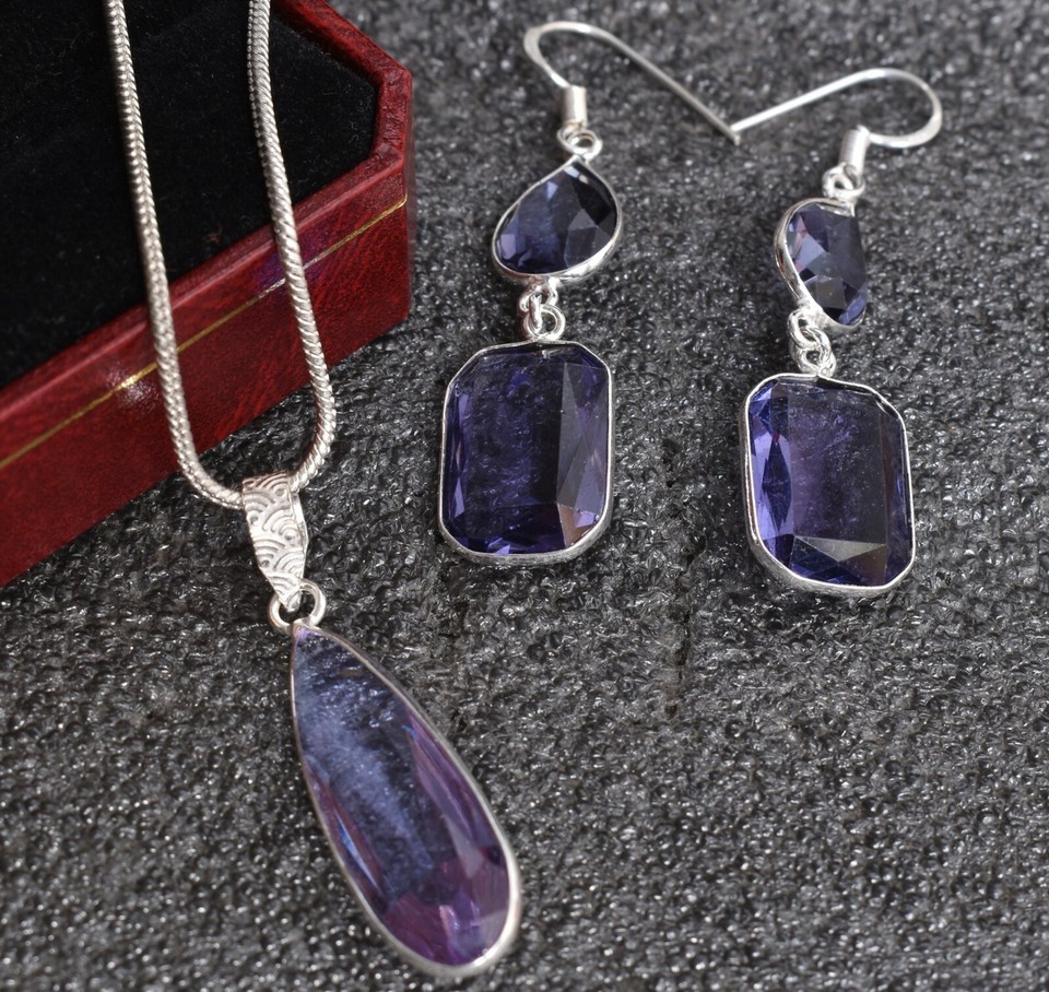Sterling Silver Amethyst Gemstone Handmade Pendant Earrings Gift For Mothers Day