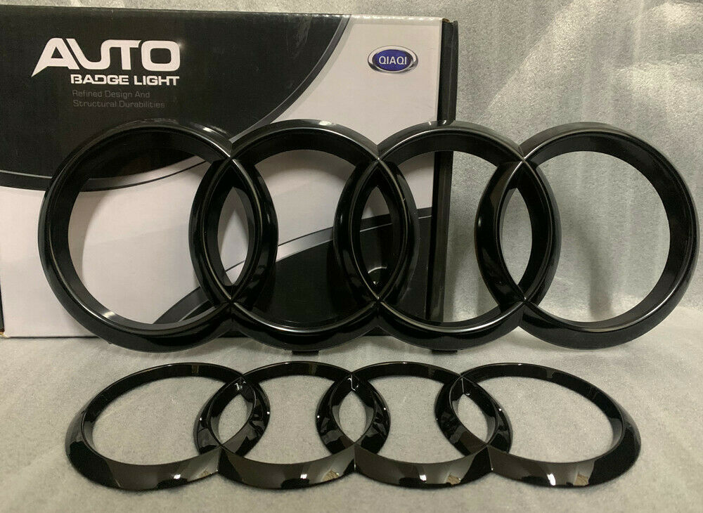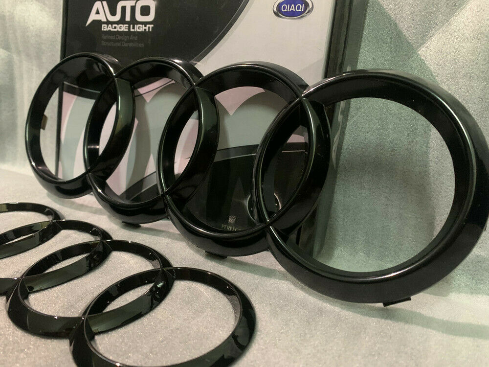 Gloss Black Front Grille Rear Trunk Rings Logo-Emblem For Audi A3 A4 A5 S4 S5 RS