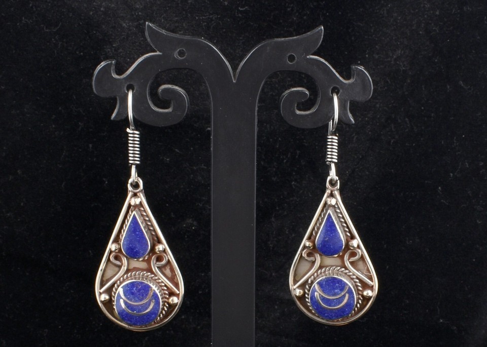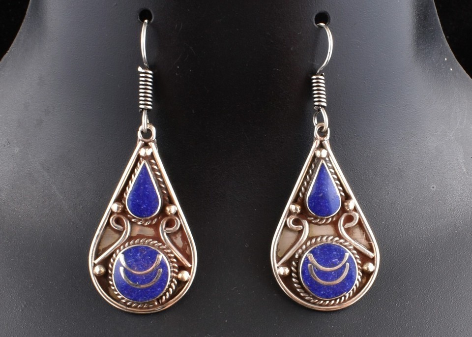 Casual Wear Blue Nepali Jewelry Handmade Dangle Drop Earrings For Women