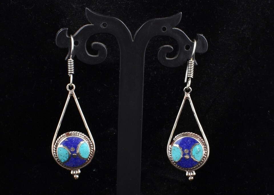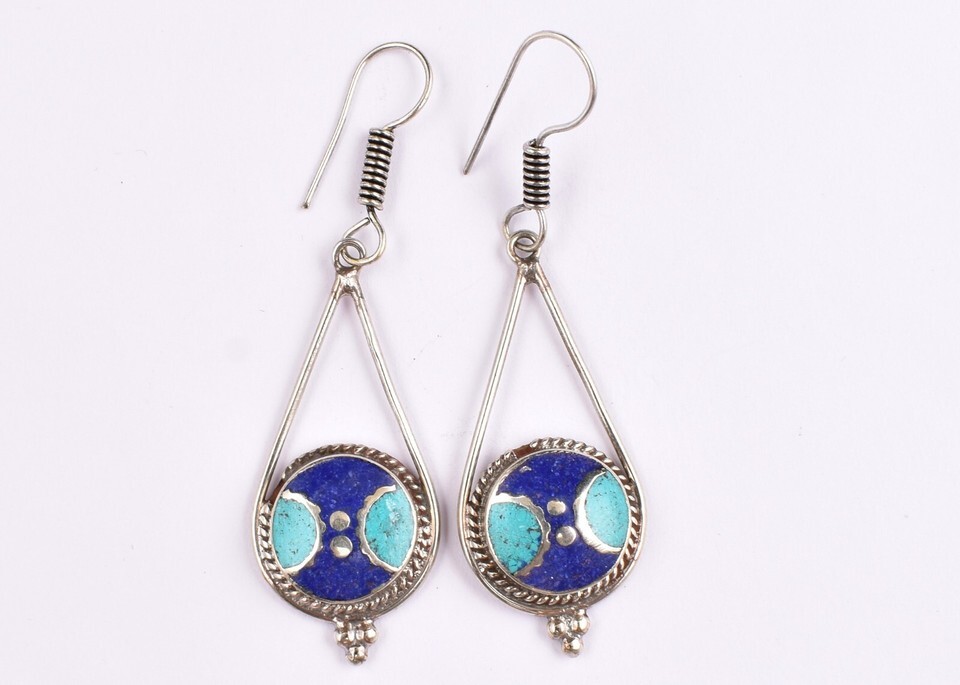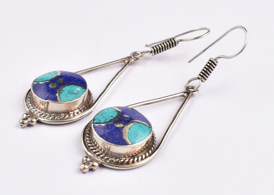 Handmade Casual Wear Blue Nepali Jewelry Dangle Drop Earrings For Women