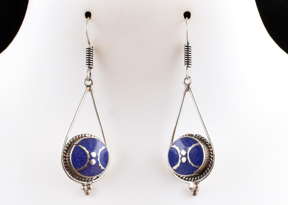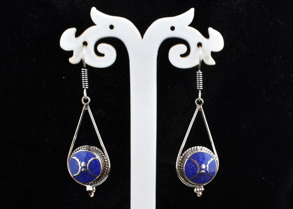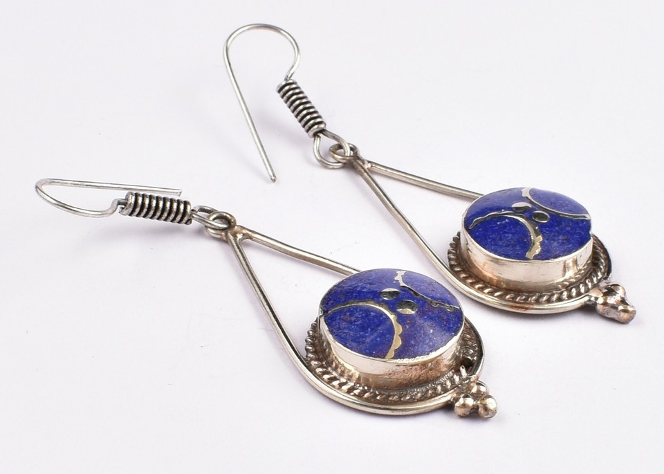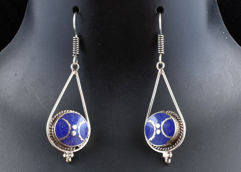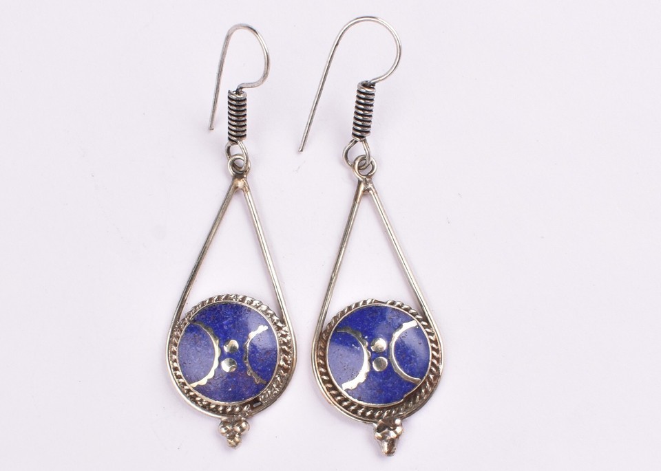 Casual Wear Blue Nepali Jewelry Handcrafted Dangle Drop Earrings For Women