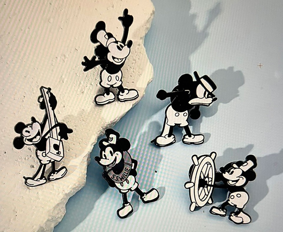 DISNEY - MICKEY MOUSE RETRO STEAMBOAT WILLIE Set of 5 Enamel Lapel Pins
