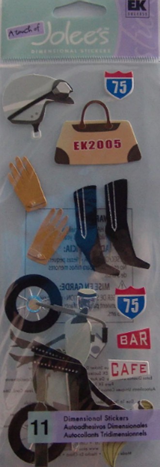 RARE! Jolees Biker Chic Motorcycle Helmet Gloves Boots Bag 3D Scrapbook Stickers