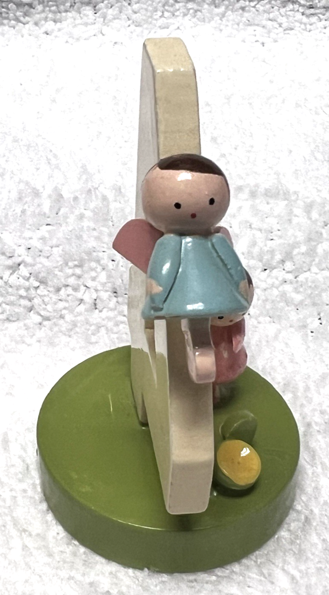 Sevi Italy Happy Birthday To You 4th Birthday Cake Topper w Angels 2 7/8 Tall in very good shape box has some wear