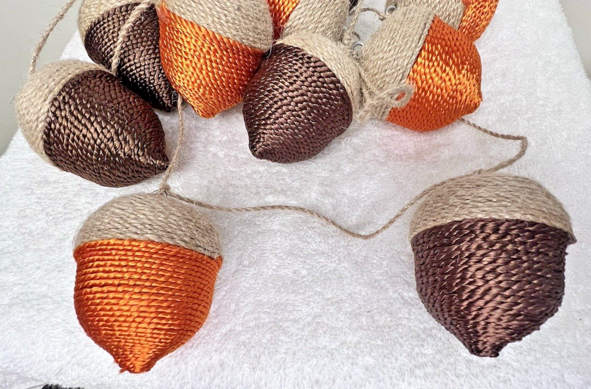 Fun 3" Acorn's Acorn Fall Garland 6+ Feet Orange Brown Tan Very Cute