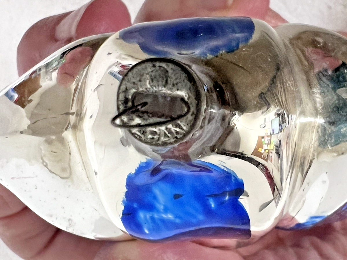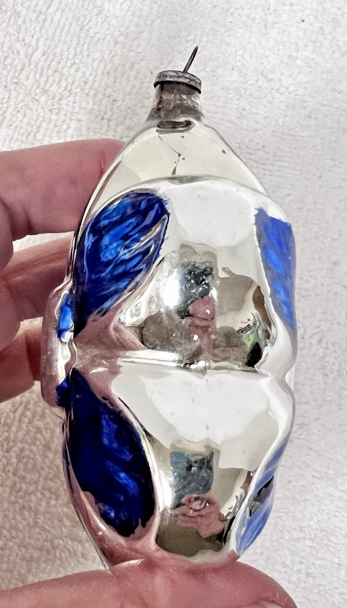 Vintage Japan Silver Cobalt Blue Flower Shaped Christmas Ornament 3.5" long 2 7/8 wide In good shape the blue is hand painted on so not perfect but so sweet