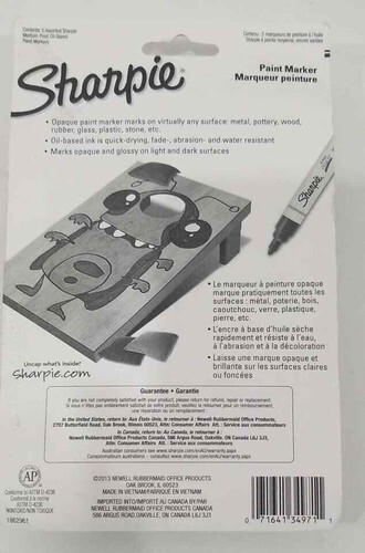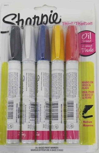 Create stunning scrapbooks, posters and window art with this five-pack of Sharpie Paint medium-tip assorted oil-based paint markers. Write on almost any hard surface with these Sharpie Paint oil-based paint markers. A medium tip lets you make bold permanent marks while maintaining precision, and the quick-drying ink resists water, smearing and fading while working on glass, metal and almost any other hard surface. These Sharpie Paint oil-based paint markers come in assorted colors, so you can create dynamic works of art. Permanent ink formula is designed to last. Assorted colors include black, red, blue, yellow, and white. Medium point provides accuracy and detail. Five markers per pack. As these markers are non-toxic, they are extremely safe to use. Meets or exceeds ACMI AP standard. Safety Data Sheet Sold as 5/Pack. If the item details above aren?t accurate or complete, we want to know about it.