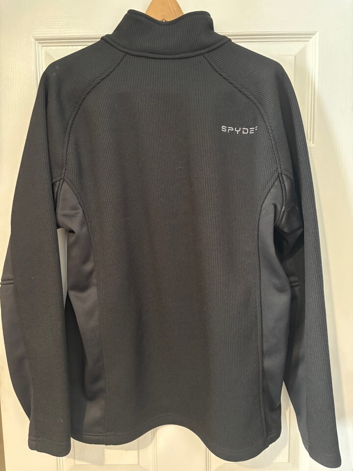 Stay warm, comfortable, and stylish with this high-quality Spyder quarter-zip pullover. Designed for performance and everyday wear, this premium piece features a sleek athletic fit with durable construction and signature Spyder styling.This pullover has a textured performance fabric body with smooth stretch side panels for added comfort and mobility. The quarter-zip design makes it perfect for layering in colder weather, outdoor activities, or casual wear.? Features:Authentic Spyder performance pulloverQuarter-zip front with high collar for added warmthSignature Spyder logo on chest and branding on backTextured thermal fabric body for insulationStretch side panels for flexibility and comfortLightweight yet warm ? great for layeringColor: BlackAthletic performance design