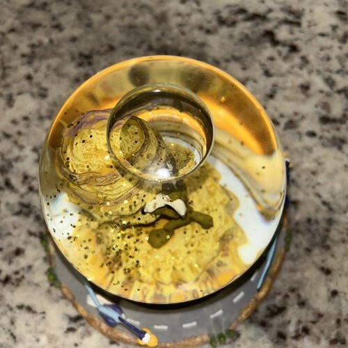 The item does not have any chips or cracks. The globe does not spin. You can turn it to hear the music but it will not go on its own. The globe plays ?On the Road Again?