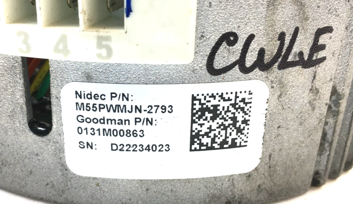 This is NIDEC M55PWMJN-2793 Programm ECM Module ONLY for Goodman Amana p/n 0131M00863 Ver. 656 240V 1HP CW Lead End rotation used part.