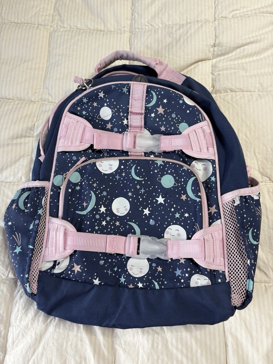 The Pottery Barn Kids Large Mackenzie Backpack in the Planets pattern is a vibrant and fun backpack designed for girls who love space. The multicolor design with planets and hearts adds a playful touch, while the zip closure ensures the security of personal belongings. Made from durable polyester material, this large backpack is perfect for carrying books, snacks, and other essentials in style.