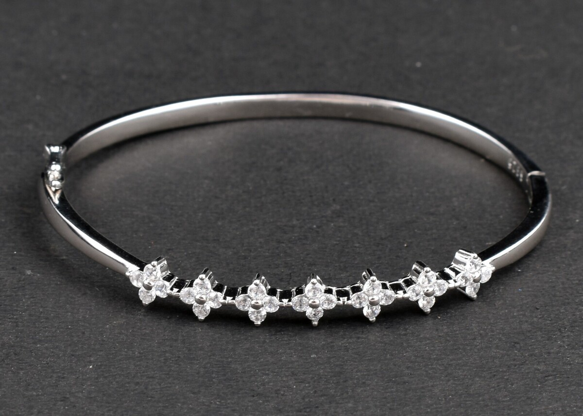 Bracciale artigianale in argento sterling 925 con zirconi e pietre preziose d...