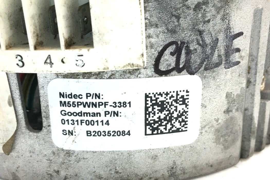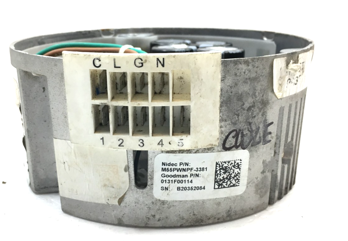 This is SELECTECH M55PWNPF-3381 ECM Module ONLY (no motor offered) 1HP 120V for p/n 0131F00114, CW Lead End rotation used part.