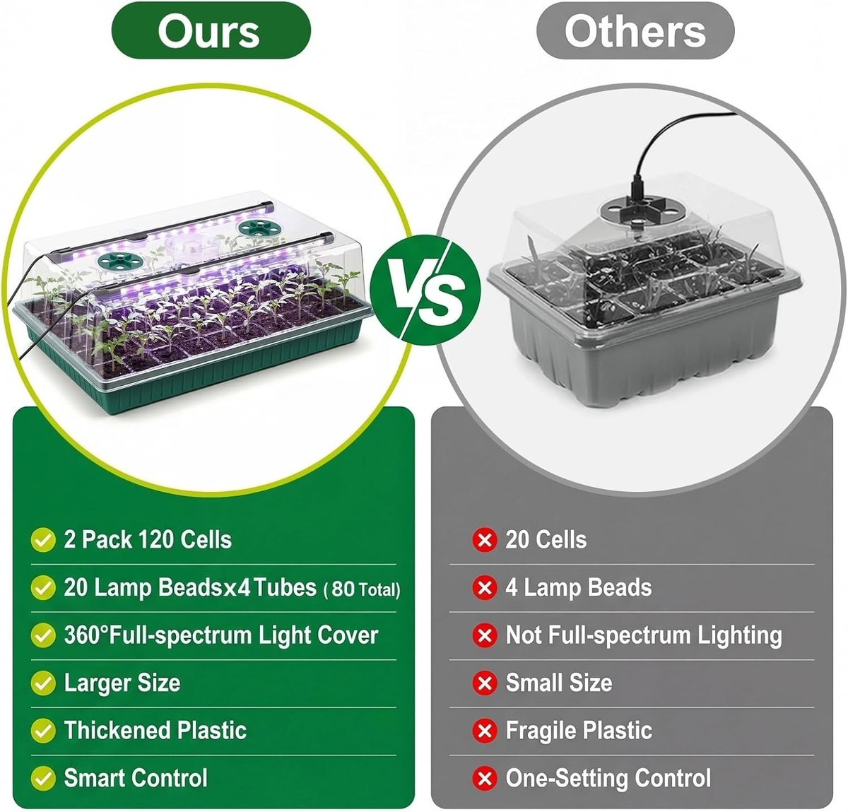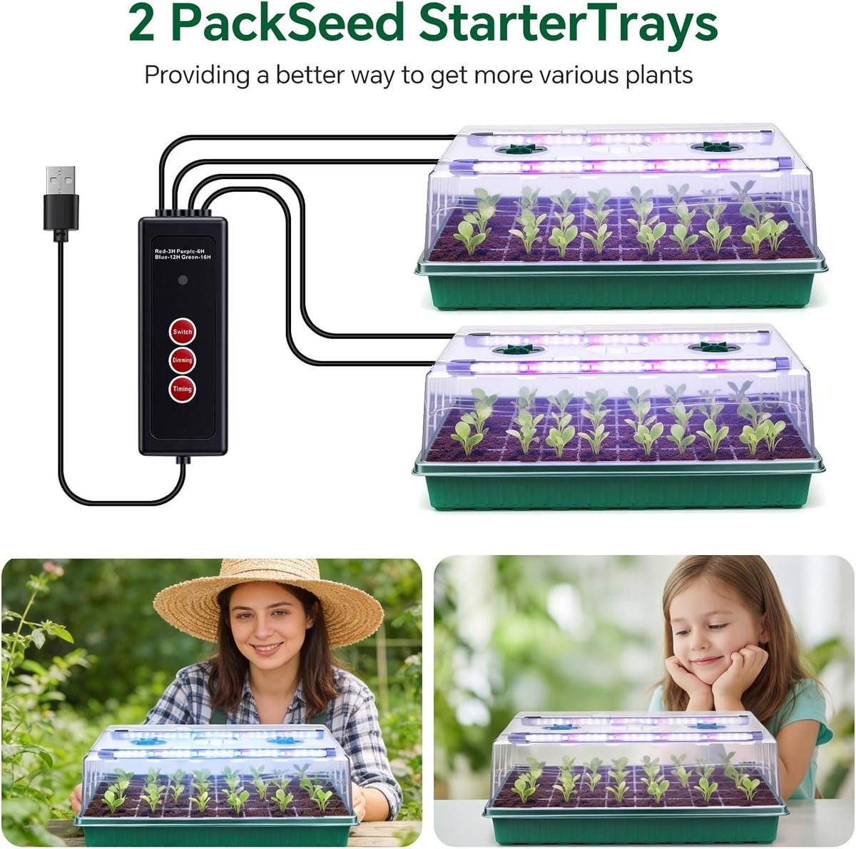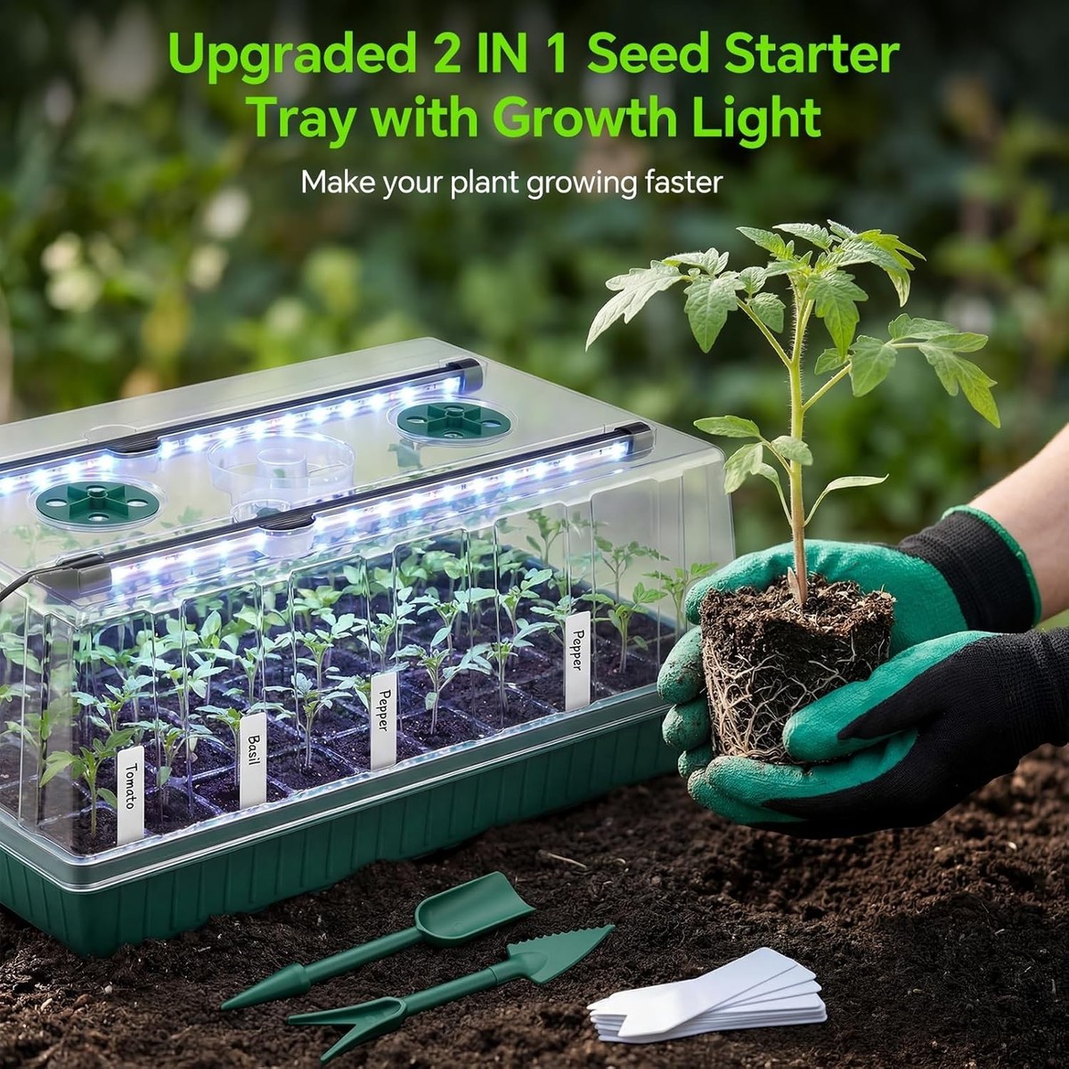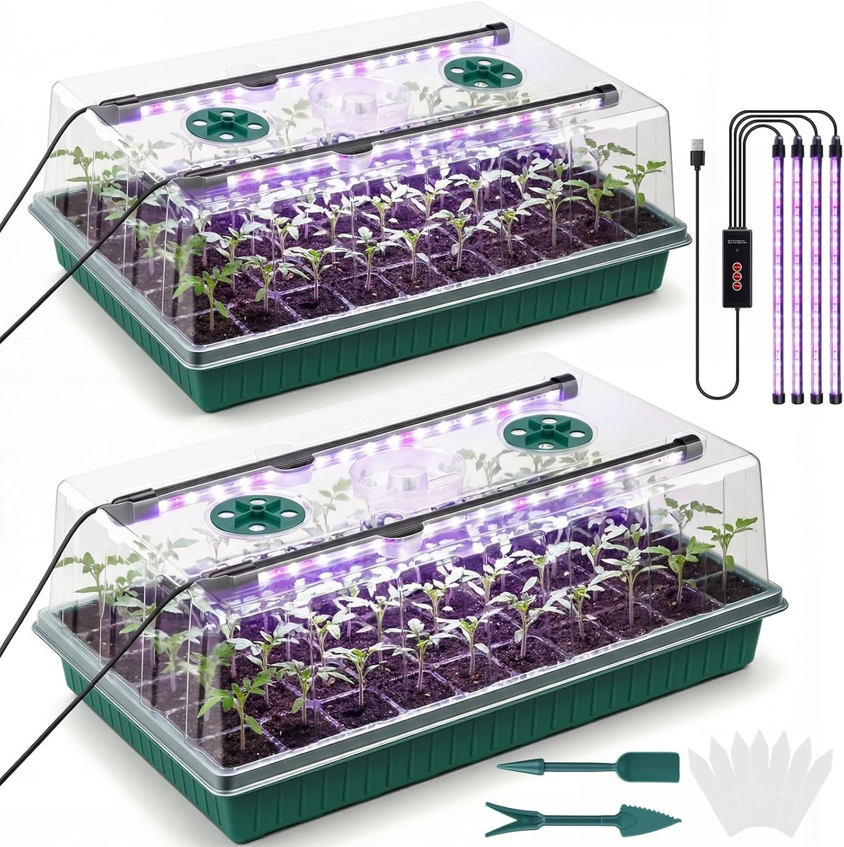 Eco-Friendly 120-Cell Seed Starter Trays with Adjustable LED Grow Lights