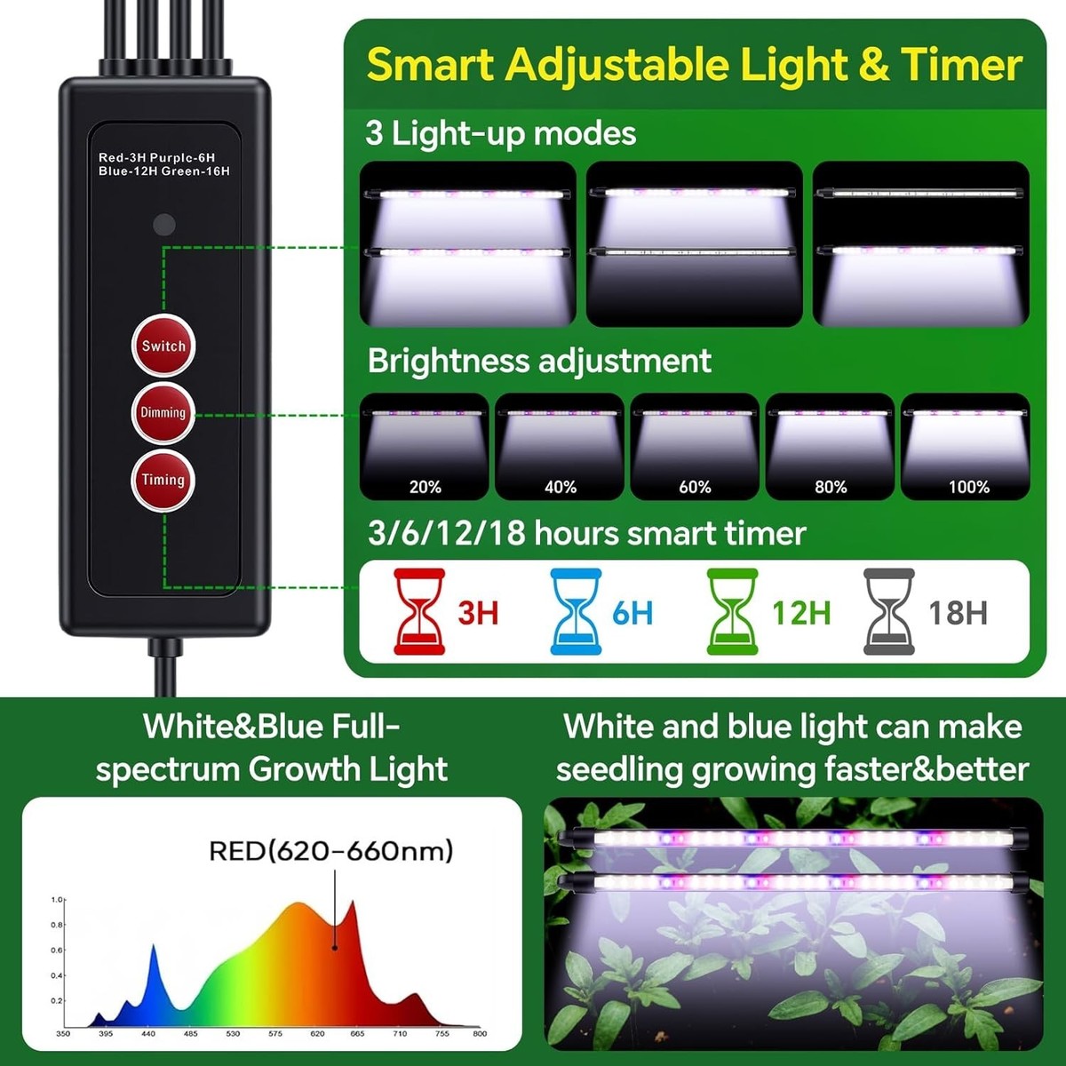 Set Includes: Tray,LED Grow Lights,Timer,Vented Lids,Transplanting Tools,Plant Labels