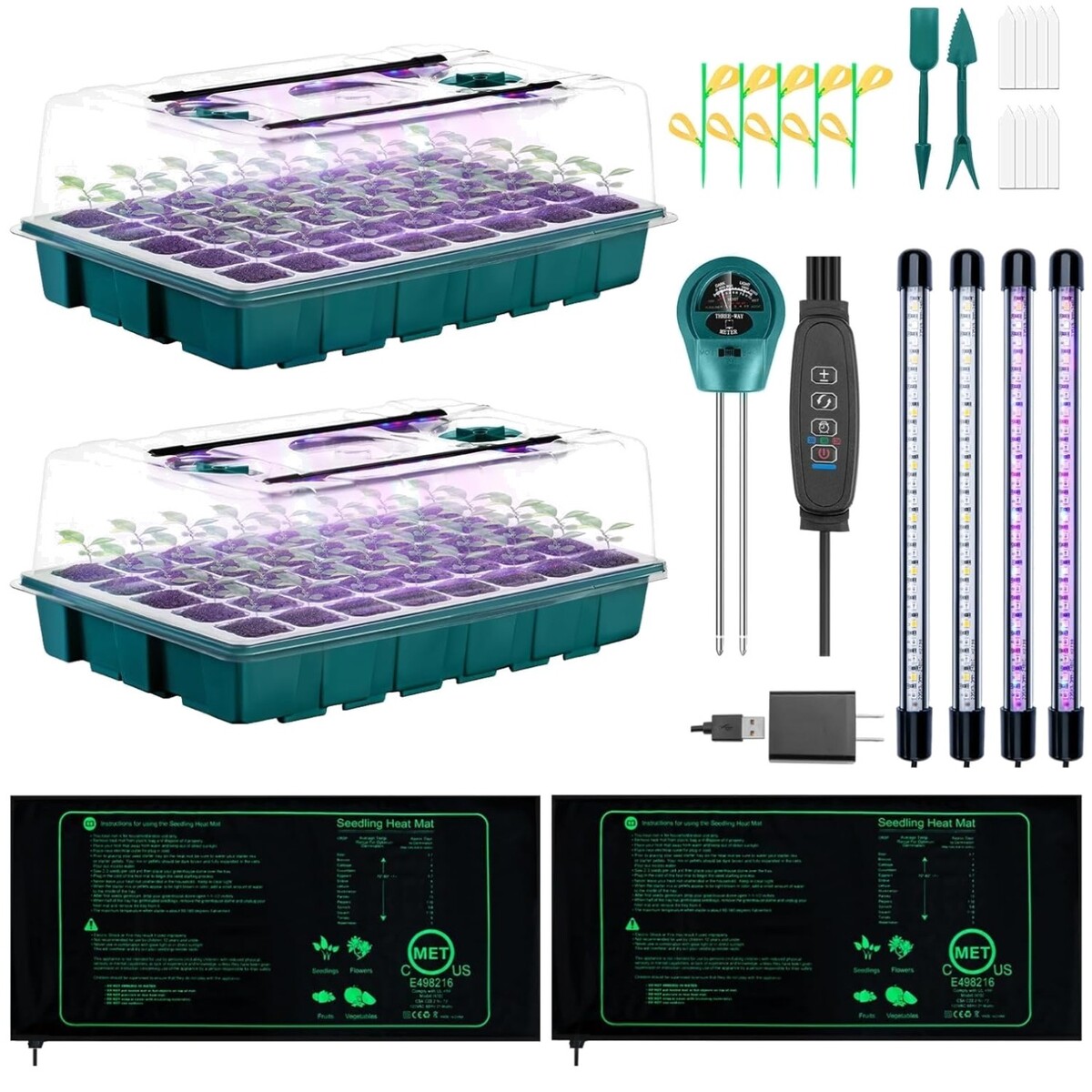 Complete Indoor Germination Station: Seed Starter Tray, Grow Lights Heat Mat
