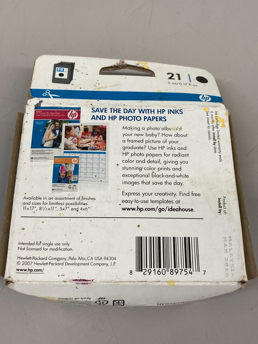 Genuine OEM HP 21 (C9351AN) Black Ink Cartridge - Exp 3/2010