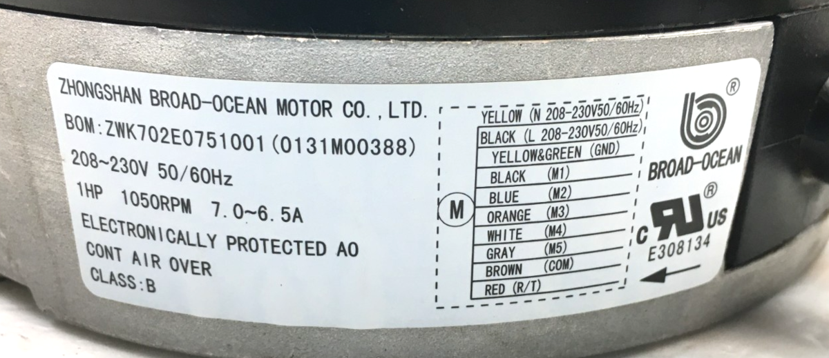 This is BROAD-OCEAN ZWK702E0751001 ECM Module ONLY 1 HP KMSAH011C07 0131M00388 208/230V used part.