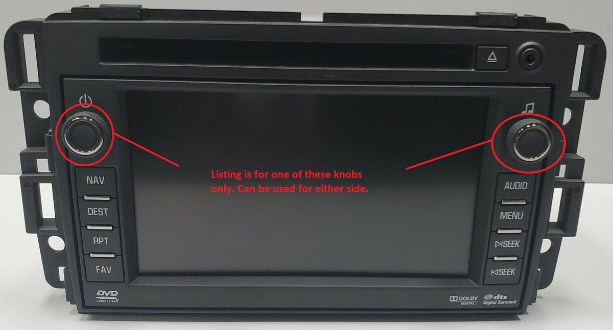 This is a new knob for some GM Delco navigation radios from @2006-2013. It can be used for either the Volume or the Tune. It is not for any other part or for any other radio. Just the knob. It is black in color, with a chrome ring. (The main pictures also show a dime. That is just for size reference. You are not getting a dime too...) This is brand new and has never been in a vehicle. We took them from new radios we disassembled for parts.